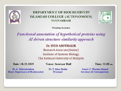 It is my pleasure to welcome you to our esteemed institution, where knowledge meets innovation and aspirations are nurtured into accomplishments. At Islamiah College (Autonomous), we are committed to providing a holistic and enriching educational experience to all our students.