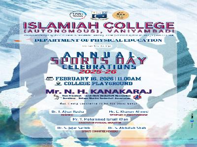 Islamiah College is a symbol of devotion to education and love for learning of the Muslims of Vaniyambadi.The College was started in 1919 and got recognition in July 1921.Though its name is “Islamiah College”, it is absolutely and totally secular and holds a true national out-look. From its very inception, it has drawn members....