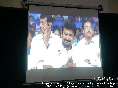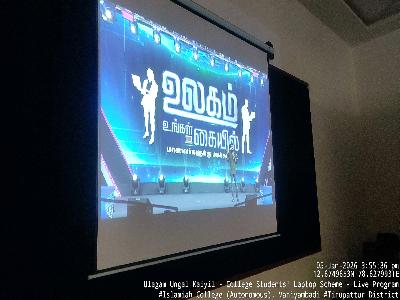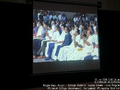 As per the Directions of the DCE, Chennai, Inauguration of Hon'ble Chief Minister's Scheme "Ulagam Ungal Kaiyil" and distribution of Free LAPTOPS to the students, was telecasted to our Final year students on 05.01.2026 at 2.30 pm at the Allama Iqbal Auditorium.