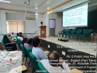 External Examiner Recommends the Thiruvalluvar University to award Doctorate Degree to the Candidate Candidate A.B.SHAMEEL AHMED, External Examiner Dr. T. DEIVASIGAMANI and Supervisor Dr.S.ABDULLAH SHAH.